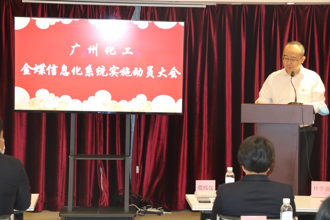 金蝶集团项目负责人刘月华就项目背景、企业环境和需求进行分析,重点阐述了金蝶集团为广州化工一体化信息管理系统设计和构架的解决方案,为整体信息化项目的推进明确了工作思路。