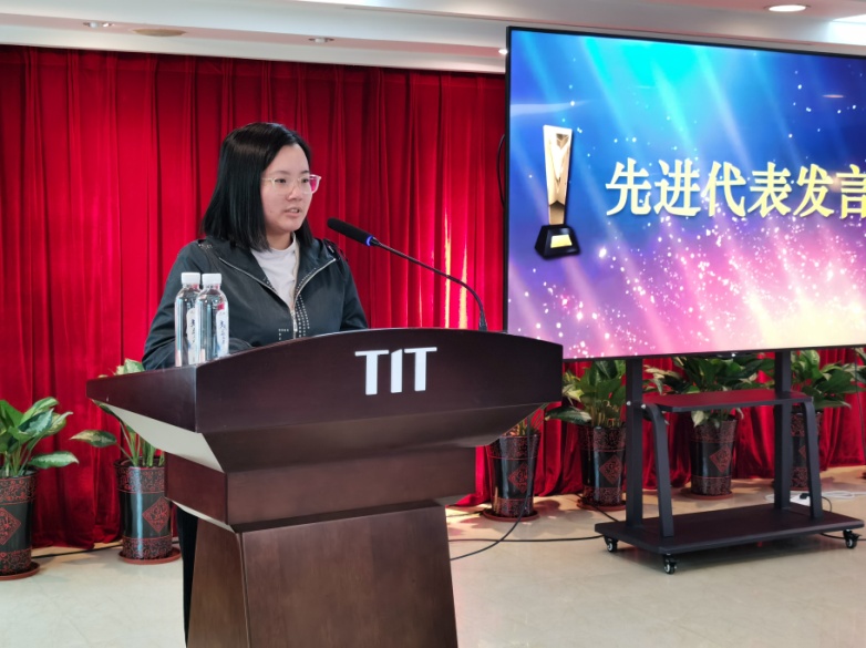 会议还对2022年涌现出来的先进集体和先进个人进行了表彰,纺出公司副总经理张菁宣读表彰决定,并举行了颁奖仪式。先进集体及个人代表作了现场发言,分享工作中的点滴收获和体会,获得了参会人员的热烈掌声。