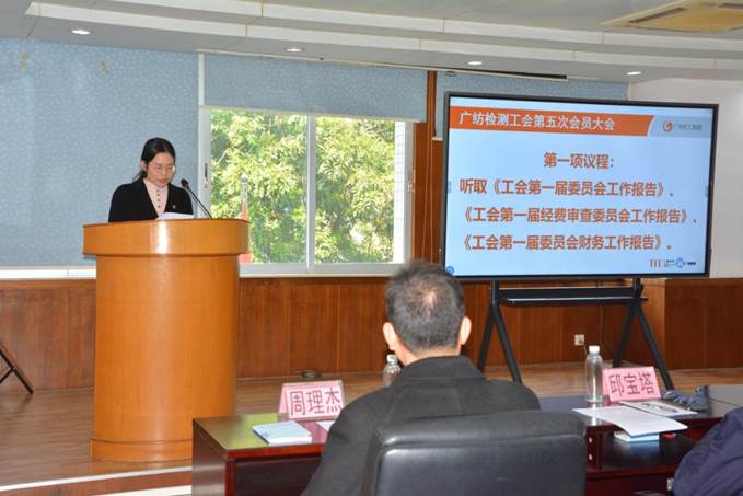大会在庄严的国歌声中拉开帷幕。公司第一届工会副主席杜旭宜作《工会第一届委员会工作报告》。报告回顾了工会第一届委员会自2019年9月3日以来,在参与企业经营管理、维护职工权利、保障职工安全健康和开展职工文娱活动等方面取得的成绩,并号召全体职工为实现广纺检测长期高质量发展不懈奋斗。