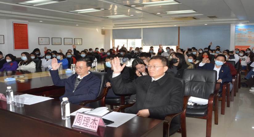 2月28日上午,广东广纺检测技术股份有限公司工会第五次会员大会暨工会换届选举大会在公司三楼会议室隆重召开。江南手机登录入口副总经理关勇,广纺检测党支部书记、董事长谭婵等党政领导班子成员以及全体职工参加会议。会议由公司副总经理刘朝主持。