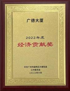 2023年6月26日,中共广州市越秀区大塘街道工作委员会授予广德大厦“2022年度经济贡献奖”。