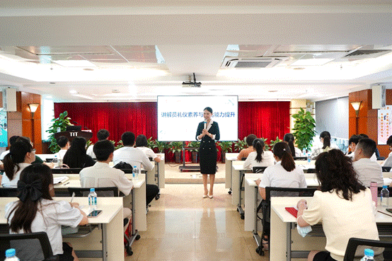 会议最后开展了《讲解员礼仪素养与表达能力提升》专题培训。由公司特邀国际礼仪高级培训师郭虹主讲。她从讲解员的服务意识、服务姿态、服务沟通技巧等三大方面,结合现场演练给大家详细、生动地诠释了作为一个讲解员,如何做好服务工作,展示最佳的公司形象,拉近公司与客户之间的距离。专业实用的讲解礼仪、服务姿态、表达技巧等让大家受益匪浅。