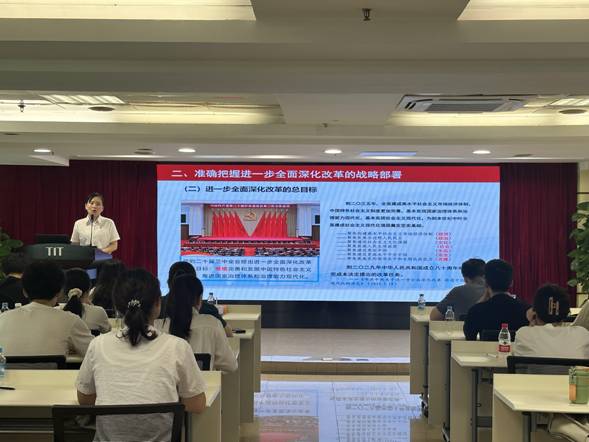 8月27日,江南手机登录入口团委书记梁晨在广德大厦15楼会议室为各团组织书记、委员,本部及纺出公司团员青年,2024年新入职管培生共47人作学习贯彻党的二十届三中全会精神专题宣讲。在宣讲过程中,梁晨通过鲜活的语言、生动的案例,从深刻把握进一步全面深化改革的重要性和必要性,深刻认识进一步全面深化改革的指导思想和总目标、重大原则、重要部署,认真落实进一步全面深化改革的实践要求等方面深入浅出地对全会精神进行了系统阐述和解读。