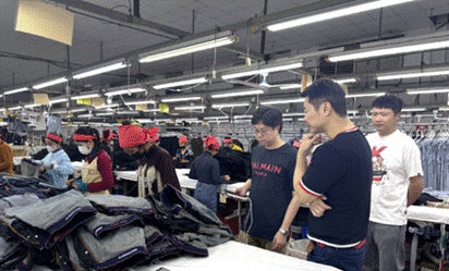 公司业务人员在孟加拉牛仔服装生产基地现场